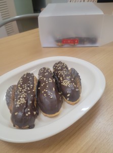 した学生さんの中に、パテェシエ志望の子がいます。ドームの共同キッチンで、🍪クッキーや、シフォンケーキ🎂を焼いている時は、エントランスまで甘い匂いが広がって、幸せな空間になります(^^♪その子から、学校でエクレアを作ったのでどうぞ🎵と頂きました!!中のクリームにもチョコが入っていて、本当に美味しかった(*^^)v ご馳走さまでした🥰